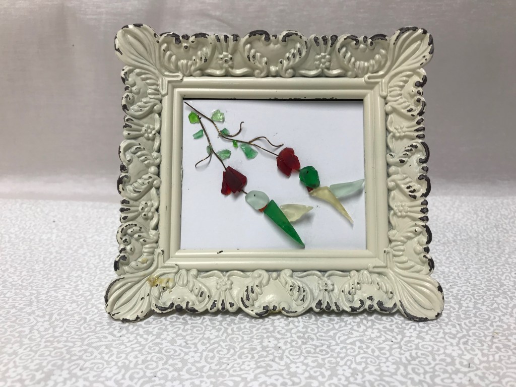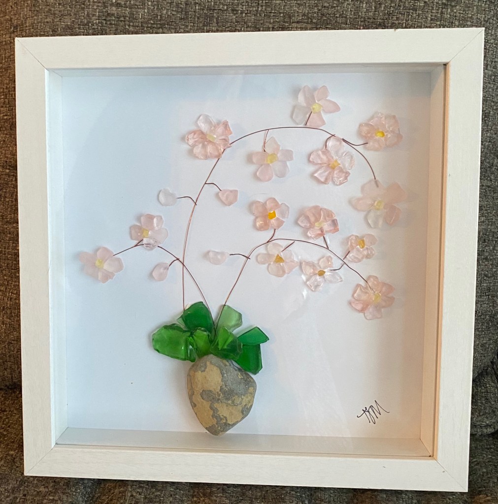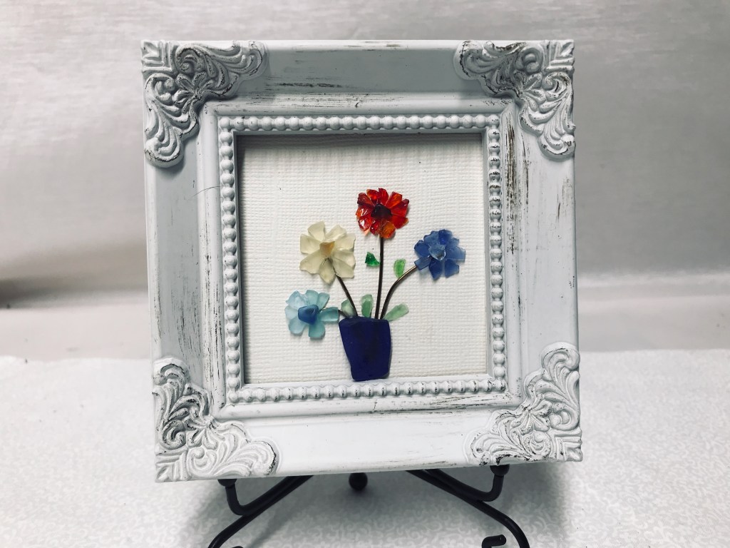 3×3″ Framed Potted Upcycled Glass Flowers $22