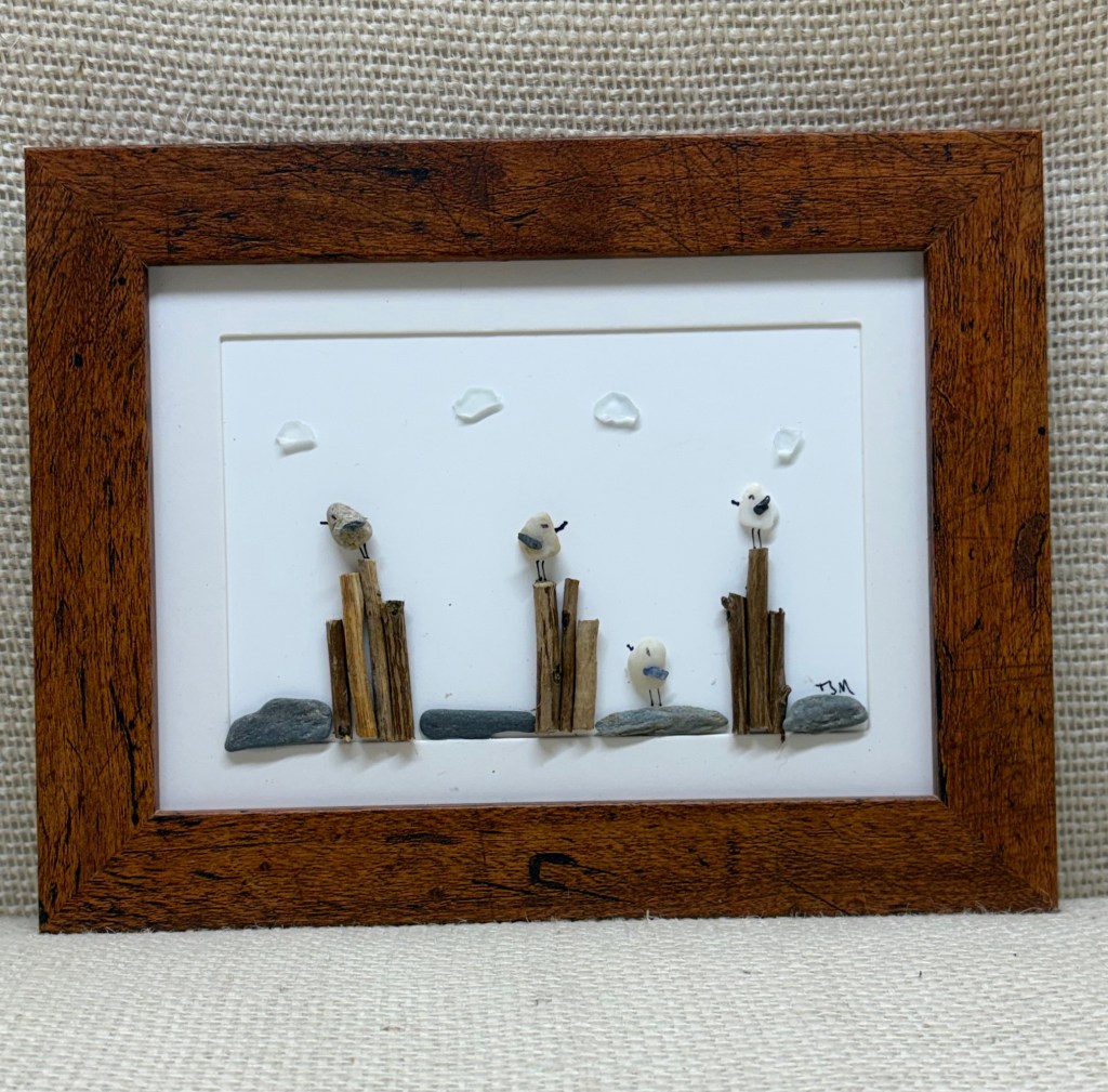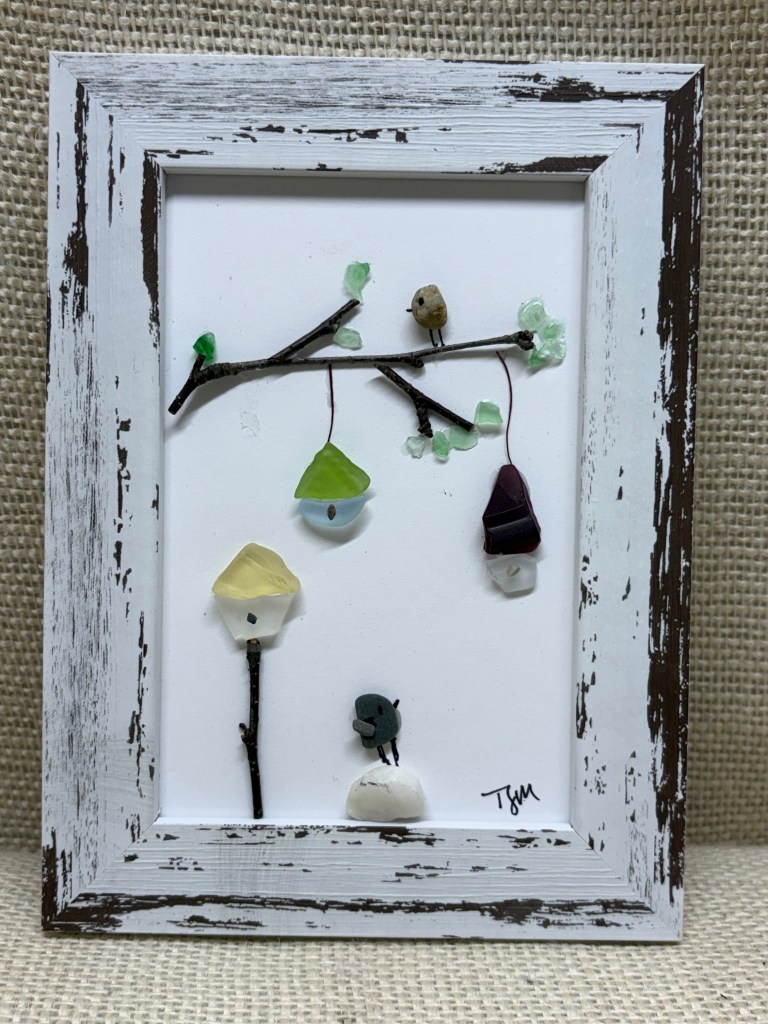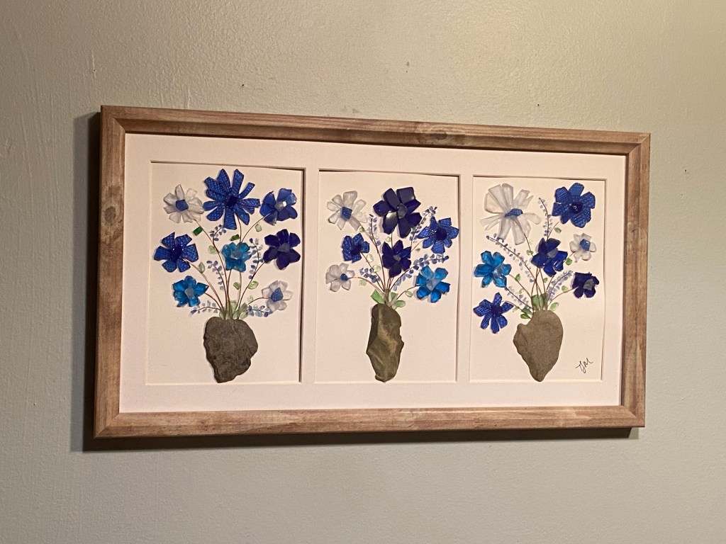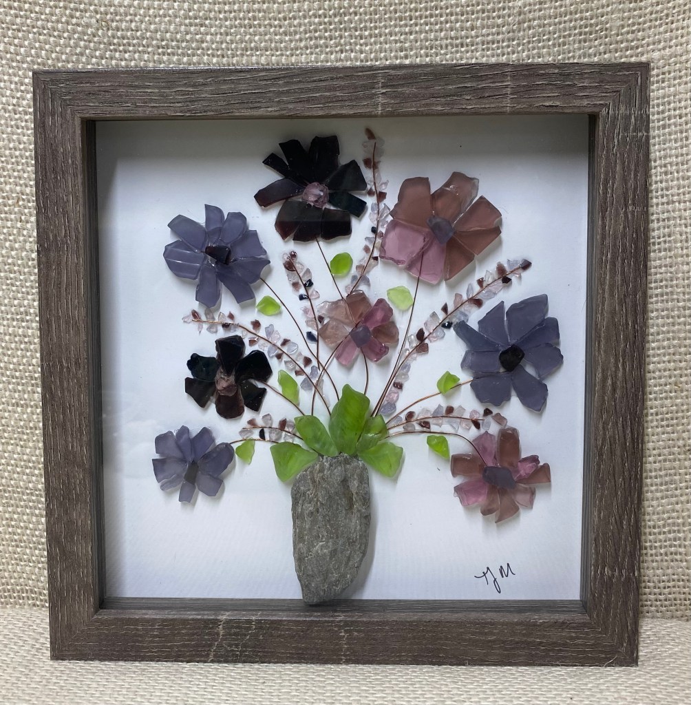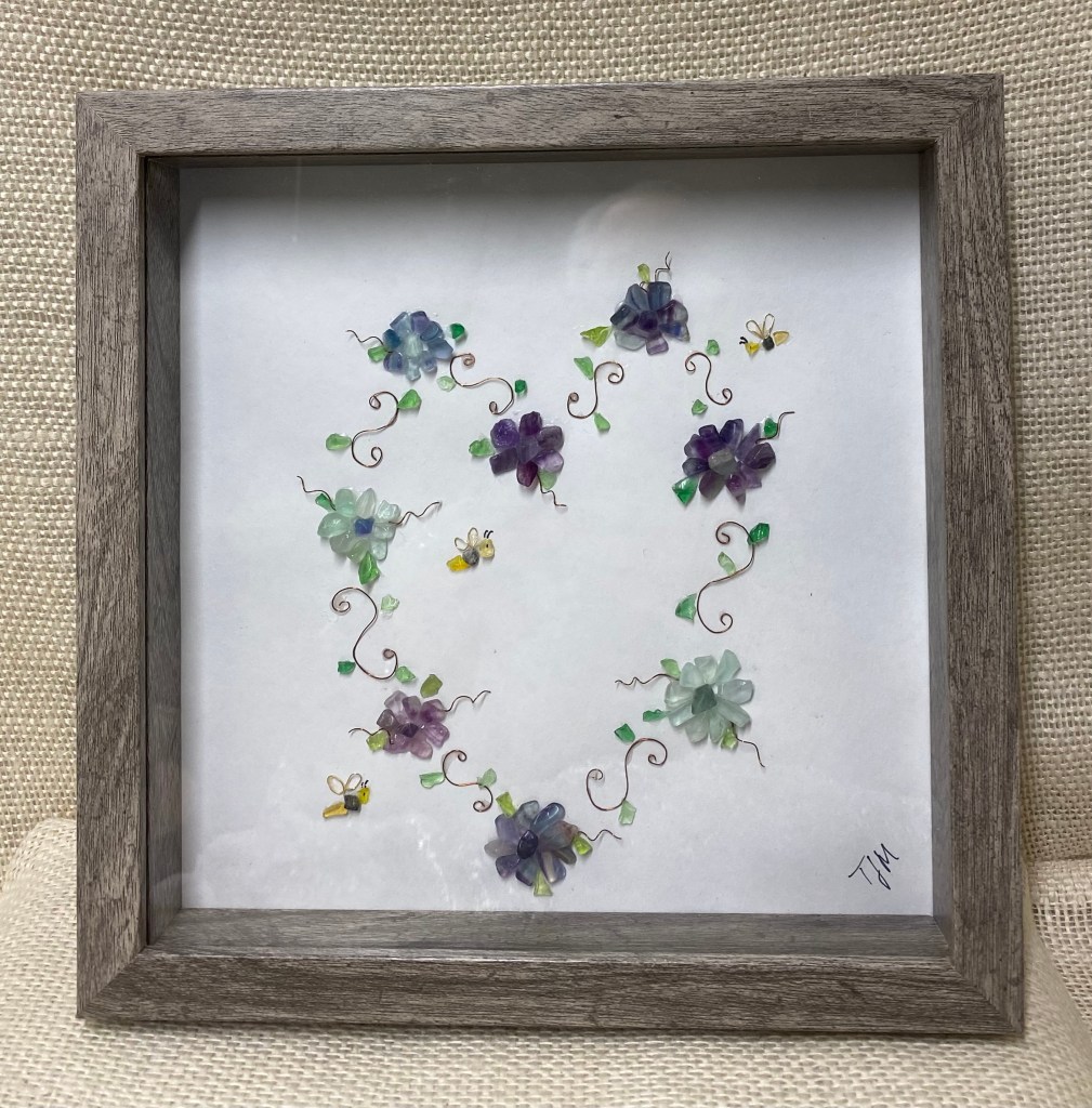 Flower and Bee Vine in 8×8 ” shadowbox frame $60